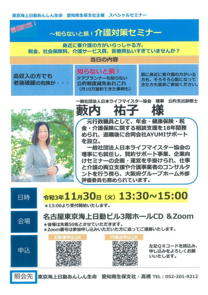 会場:名古屋東京海上日動ビル3階ホールCD(ご自宅からZoomでの参加もOK!)